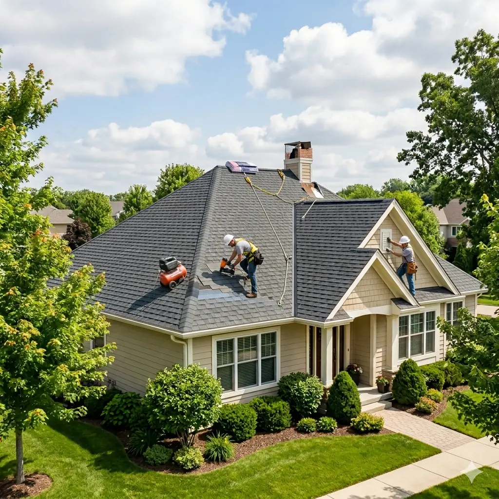 Crews follow industry best practices for safe fall protection, debris containment, and proper ventilation and flashing techniques; all installations use manufacturer‑approved methods and materials to meet local building codes.